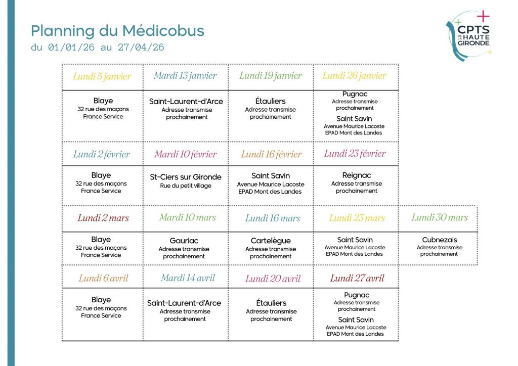 Par ailleurs, son déploiement s’élargit : autrefois présent uniquement sur Blaye, Saint-Ciers-sur-Gironde et Saint-Savin, le Médicobus desservira désormais également Gauriac, Étauliers, Cartelègue, Cavignac, Saint-Laurent-d’Arce, Reignac et Pugnac.